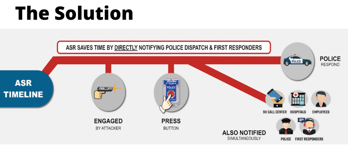 ASR Alert Systems is a patented state-of-the-art critical incident response technology specializing in the field of alert notifications to Law Enforcement and First Responders in the event of an active shooter or other crisis. Our technology can be customized to any industry, building, or event. We deliver customer-specific technology unmatched by anyone.