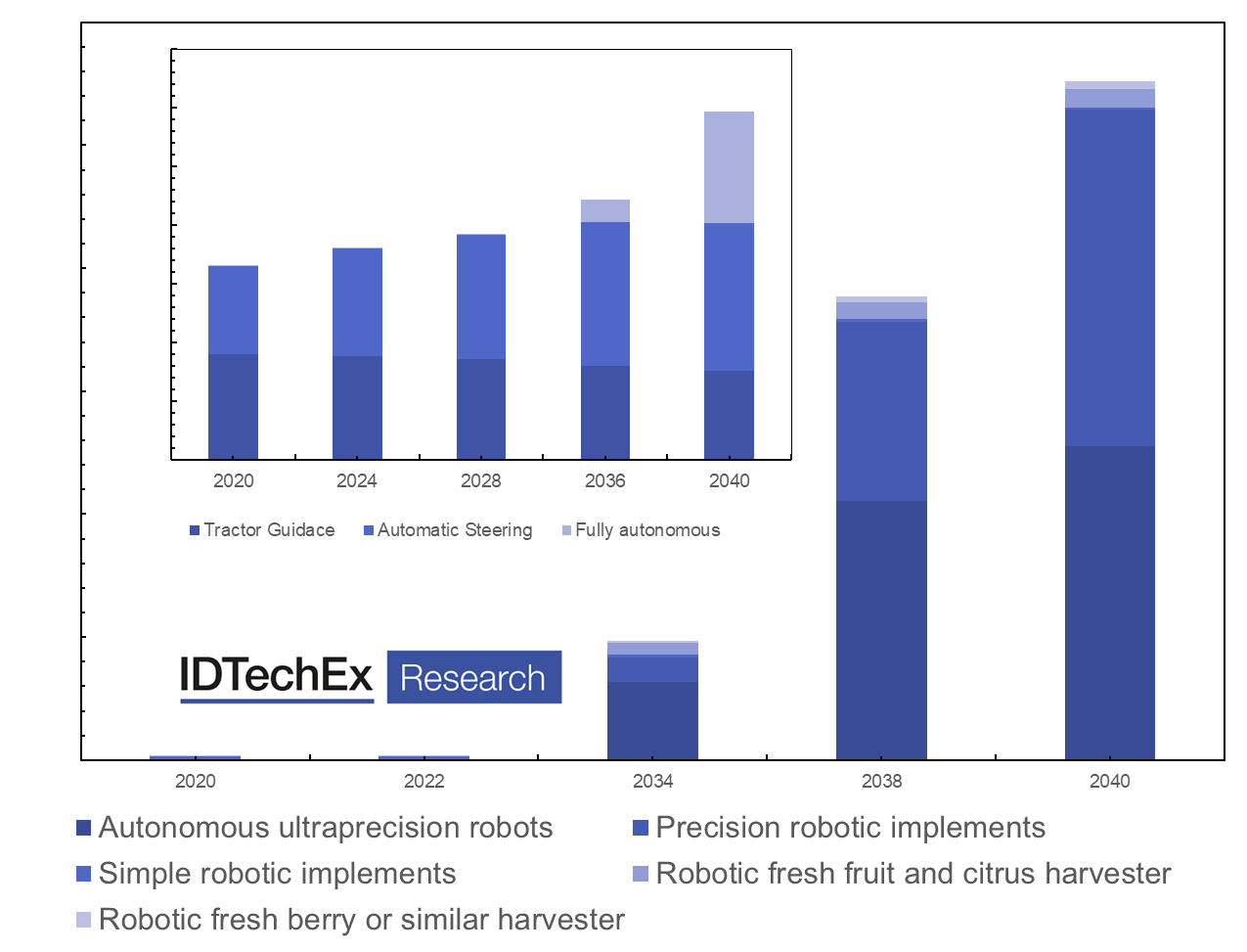 This article is based on the new IDTechEx report “Agricultural Robots, Drones, and AI: 2020-2040: Technologies, Markets, and Players”. This report provides a comprehensive analysis of all the hardware and artificial intelligence technology trends, helping assess and contextualize the current development status and to envisage a realistic future technical and market roadmap.