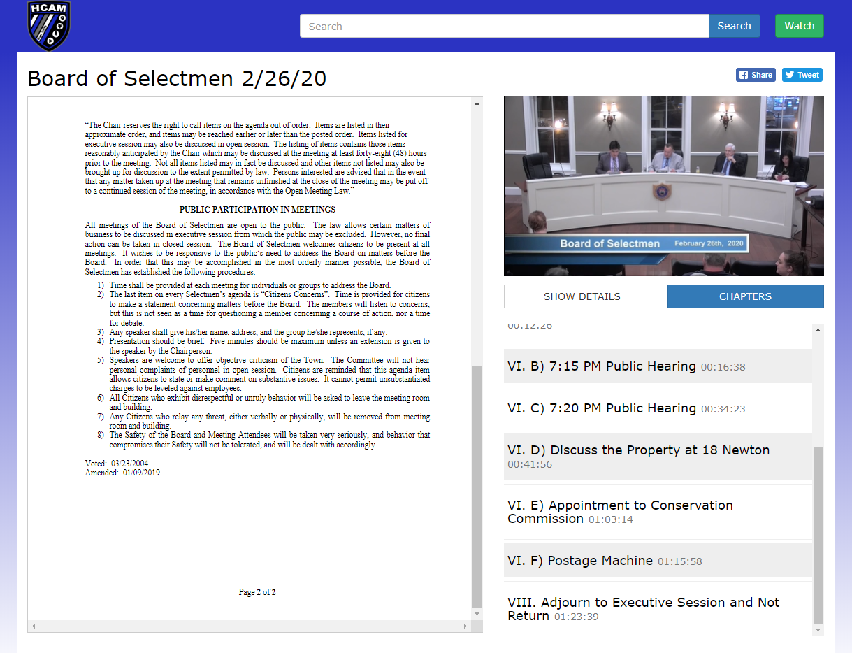 As attractive as those features were, subsequent software upgrades brought HCAM even more functionality to support its local government’s transparency initiatives and reinforce the station’s value to the town. “The ability for us to post meeting agendas alongside VOD clips is huge, especially for viewers but also for our staff members,” said Gorman. “We need a place to put such documents when we receive them, so associating them with the meeting video is ideal. Viewers can read about the meeting and watch the video all in one place, and it helps us manage our library of documents while making them easier for our community to find. It’s less taxing on our staff too, as residents can find what they’re looking for themselves without calling us.”