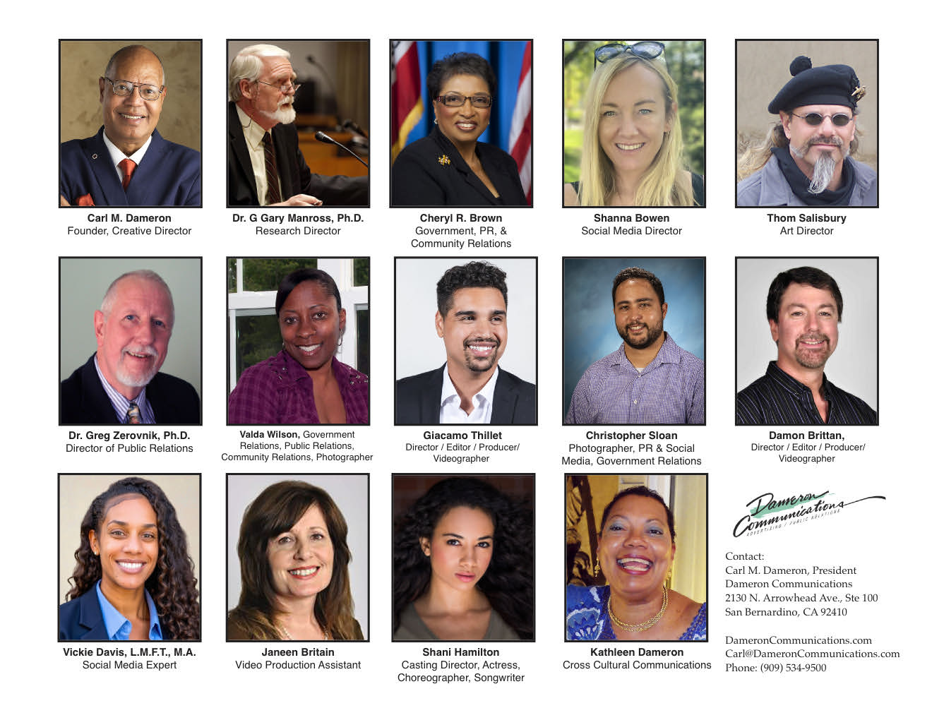 Carl@DameronCommunications.com2130 N Arrwohead, Ave, Ste 101San Bernaardino, CA 92405
