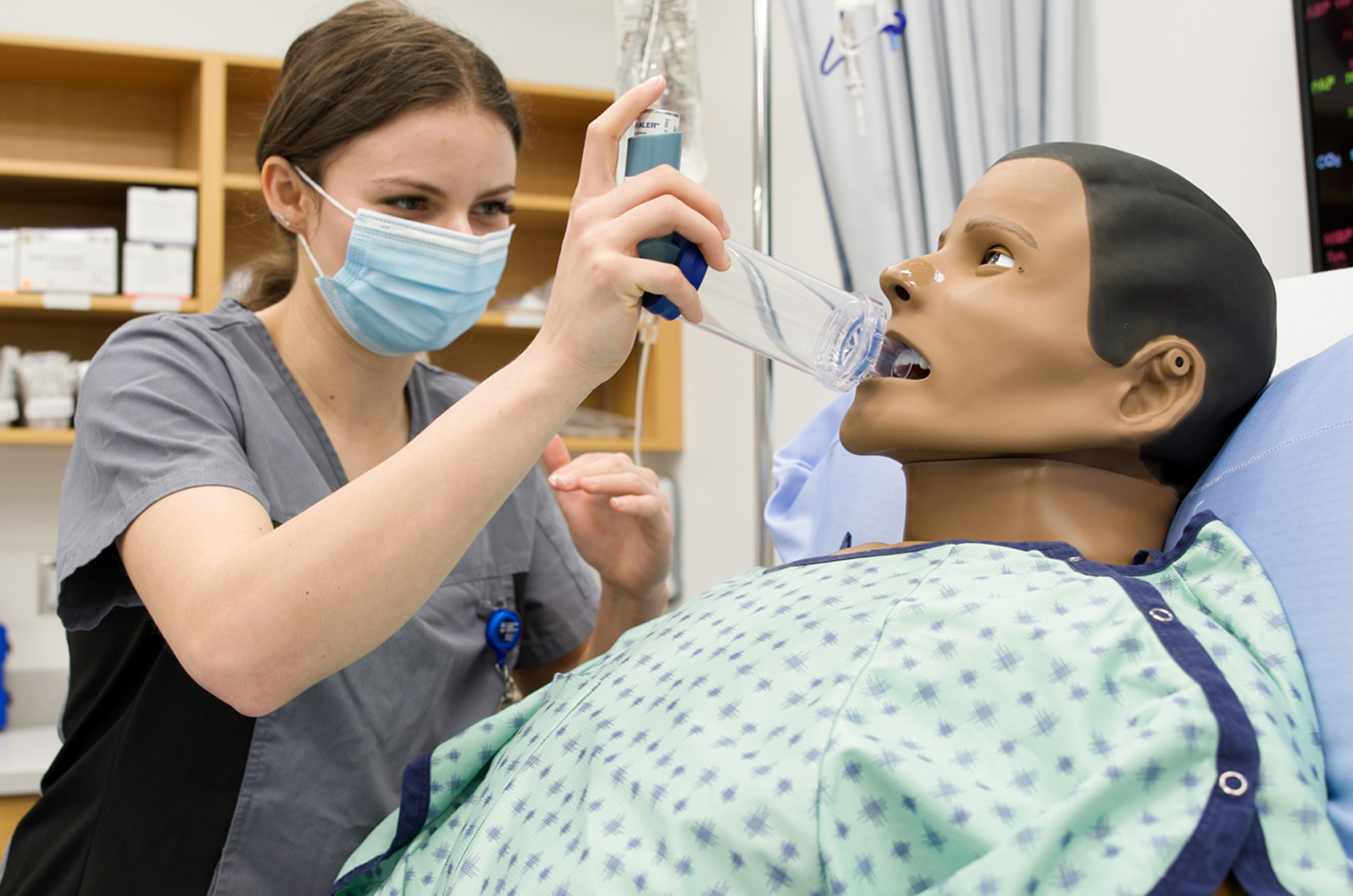 “When we’re doing simulations, it’s really a non-stressful time with no pressure. You’re in a small group with an instructor, and you can take time to think it through. It kind of gives you those skills before you even go into a hospital setting or a clinical setting,” says nursing student Christine Skirrow.