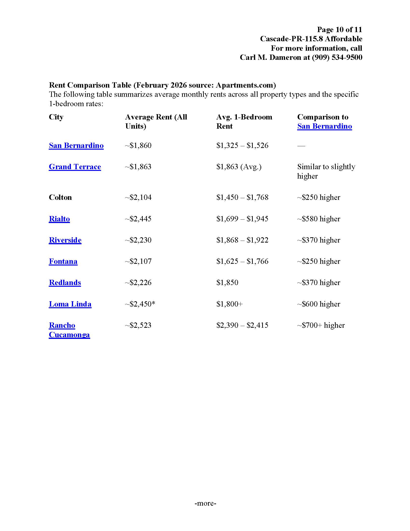 Apartments.com notes that San Bernardino's average rent is 19% below the national average, while neighboring cities like Rialto and Rancho Cucamonga are significantly above that. In fact, rent comparisons show that comparable units in Rancho Cucamonga typically cost $600 to $700 more per month than in San Bernardino.