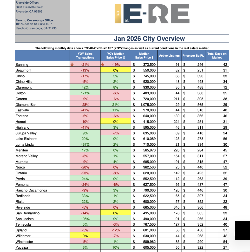 Rancho Cucamonga is the priciest market, with median prices often $300,000 higher than in San Bernardino. Loma Linda commands a premium of approximately $700,000 due to its proximity to medical centers and limited inventory.