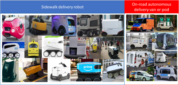 The image below shows various autonomous robots and vehicles (sometimes called pods) developed around the world. These come in a variety of shapes and forms, reflecting the diversity and breadth of design and technology choices which must be made to create such products.
