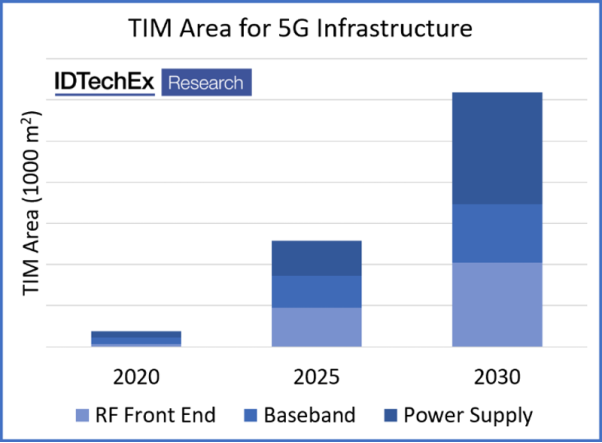 With increasing 5G installations the thermal interface material (TIM) requirement increases drastically to match. TIM is required in the antenna RF front end but also for the baseband processing and the power supply, leading to a large potential market.