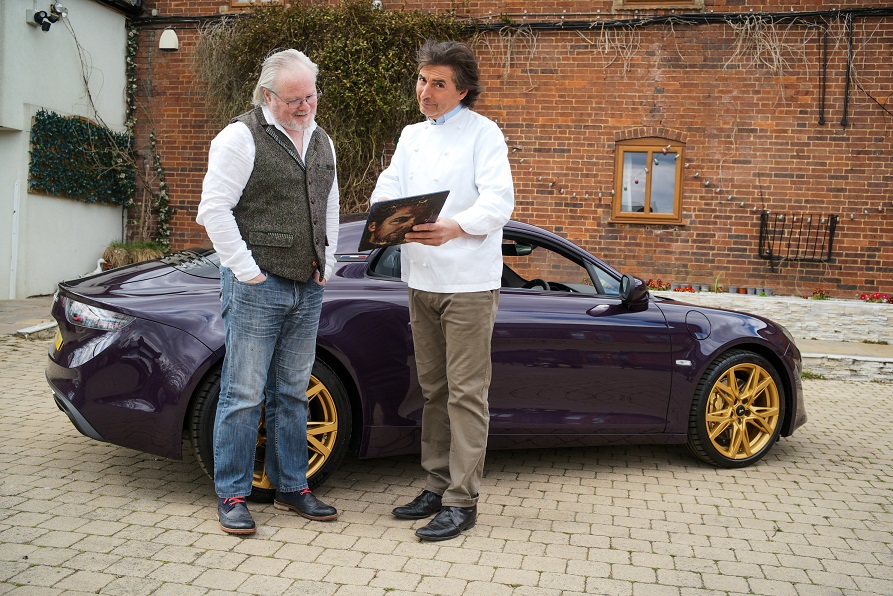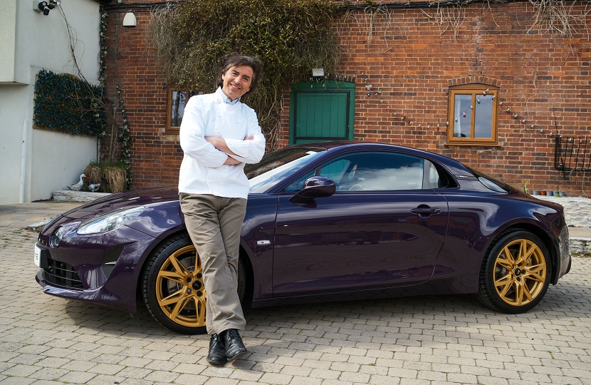 Photo: Chef Jean Christophe Novelli with Alpine’s 110 a French classic in the making which reflects the Berlintte that won the Monte Carlo Rally in 1971.