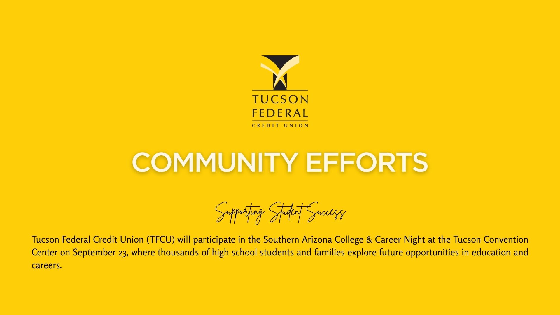 TUCSON, AZ / AGILITYPR.NEWS / September 19, 2025 / Tucson Federal Credit Union (TFCU) will participate in the Southern Arizona College & Career Night at the Tucson Convention Center on September 23, where thousands of high school students and families explore future opportunities in education and careers.