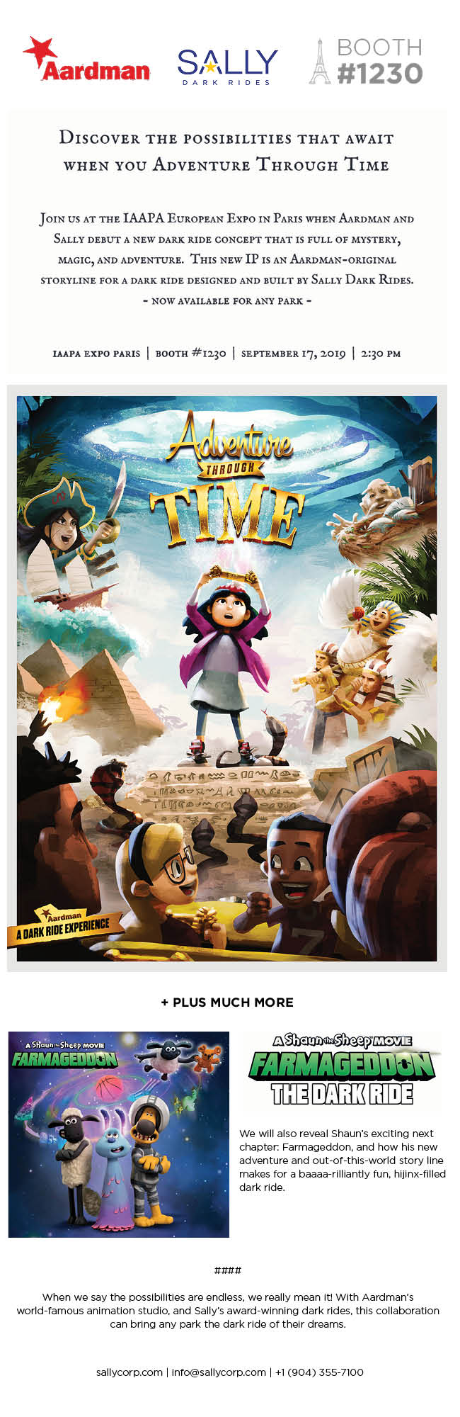 Aardman is delighted to announce its latest partnership with Sally Dark Rides in debuting not one, but two exciting new concepts for Aardman themed Dark Rides at the IAAPA EXPO Paris.