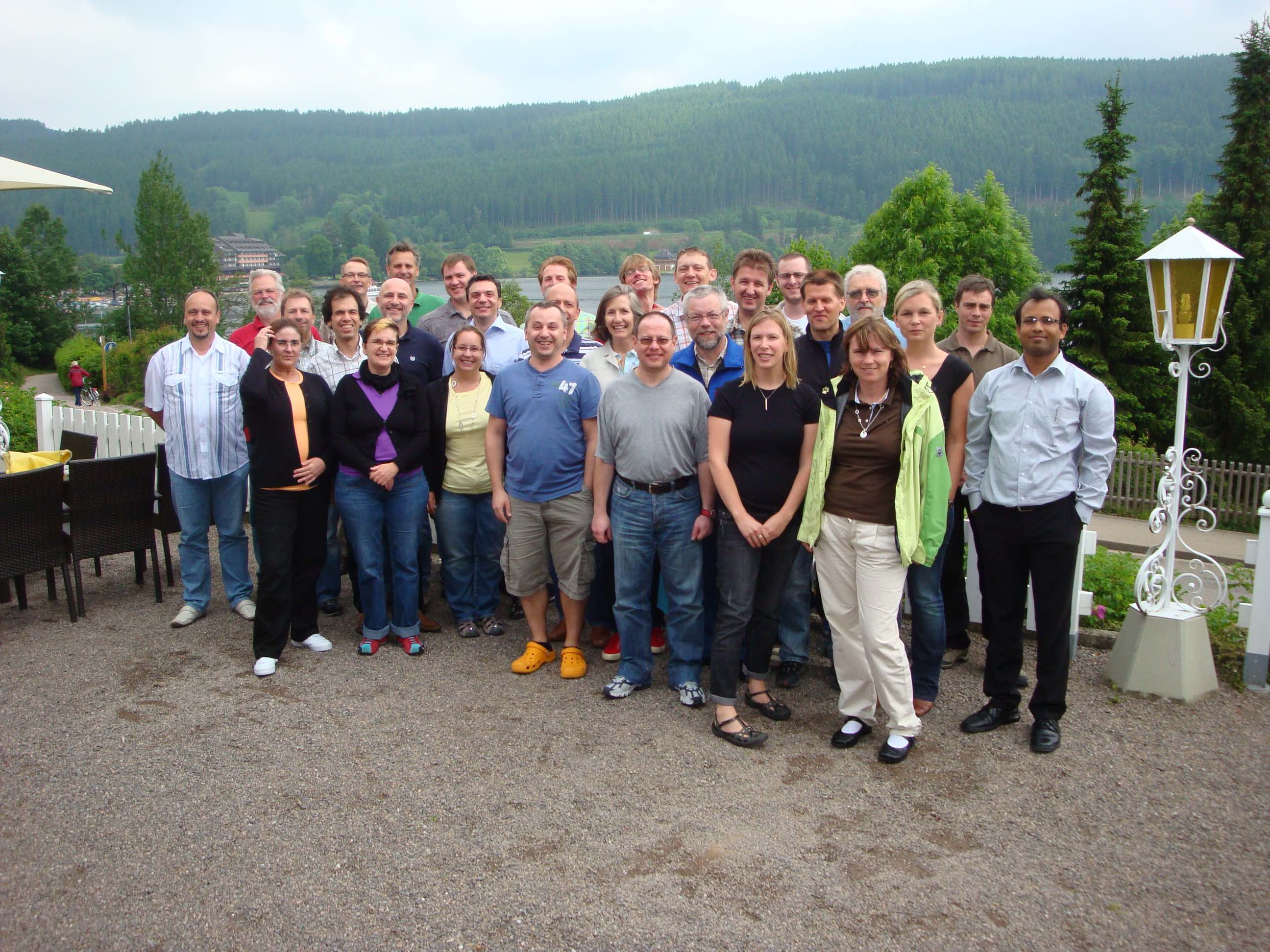 Photo: A Barix "family retreat" from 2010. Andy Stadheim is seen in the back row, fifth from left; to his immediate right is company founder and current CTO Johannes G. Rietschel (partially concealed).