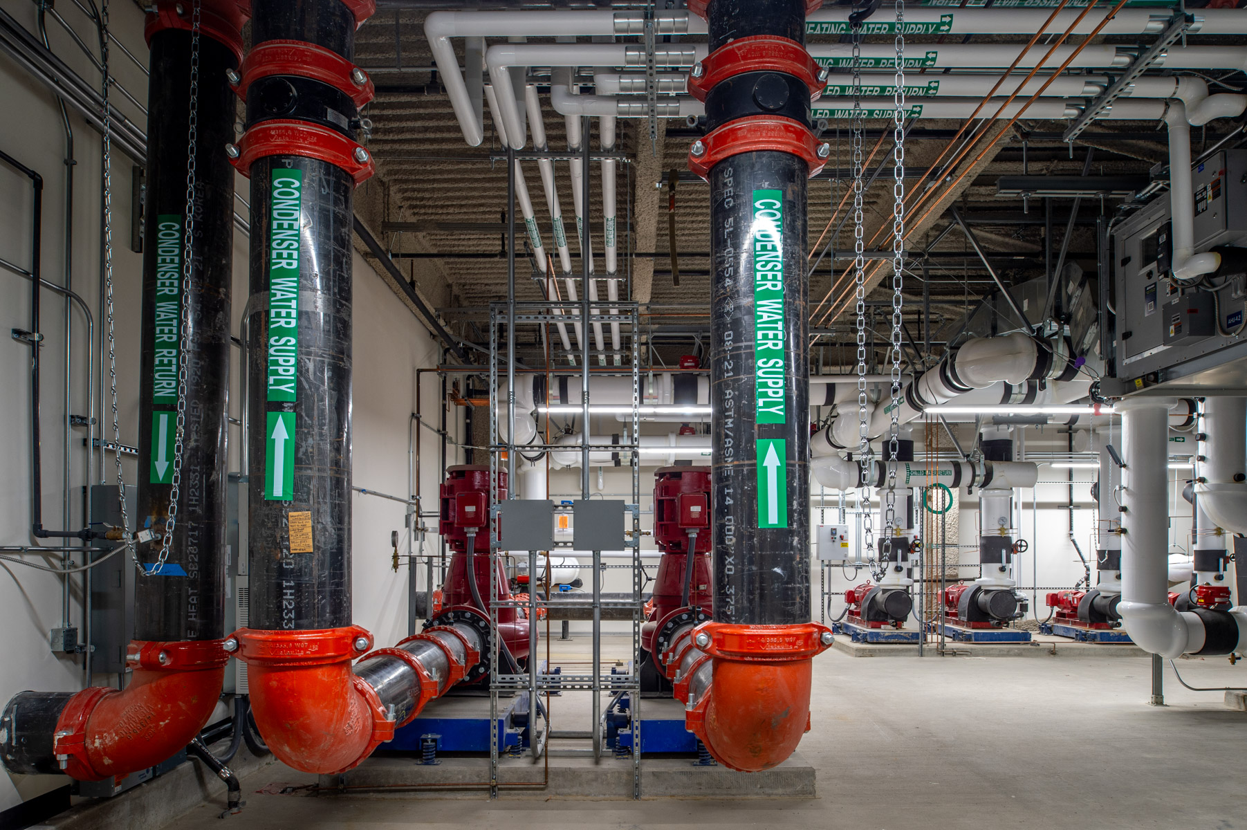 “To ensure continuous functionality, we engineered connections between the new and existing chiller plants, allowing either system to seamlessly support the other during maintenance or service shutdowns,” said KAI Mechanical Group Leader Peter McDonnell, PE, LEED AP BD+C. “This carefully coordinated approach minimized disruptions during construction and ensured reliable climate control throughout the facility.”