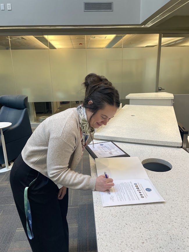 Jessica Gilbert (MTA) signs ESGR’s Statement of Support, reaffirming commitment to Guard and Reserve employees.