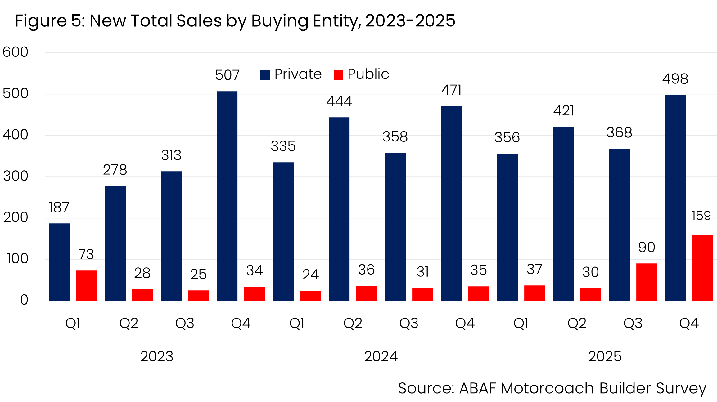 Sales to both private and public entities increased in Q4 compared to the same quarter in 2024, increasing by 5.7% and 354.3%, respectively (Figure 5).