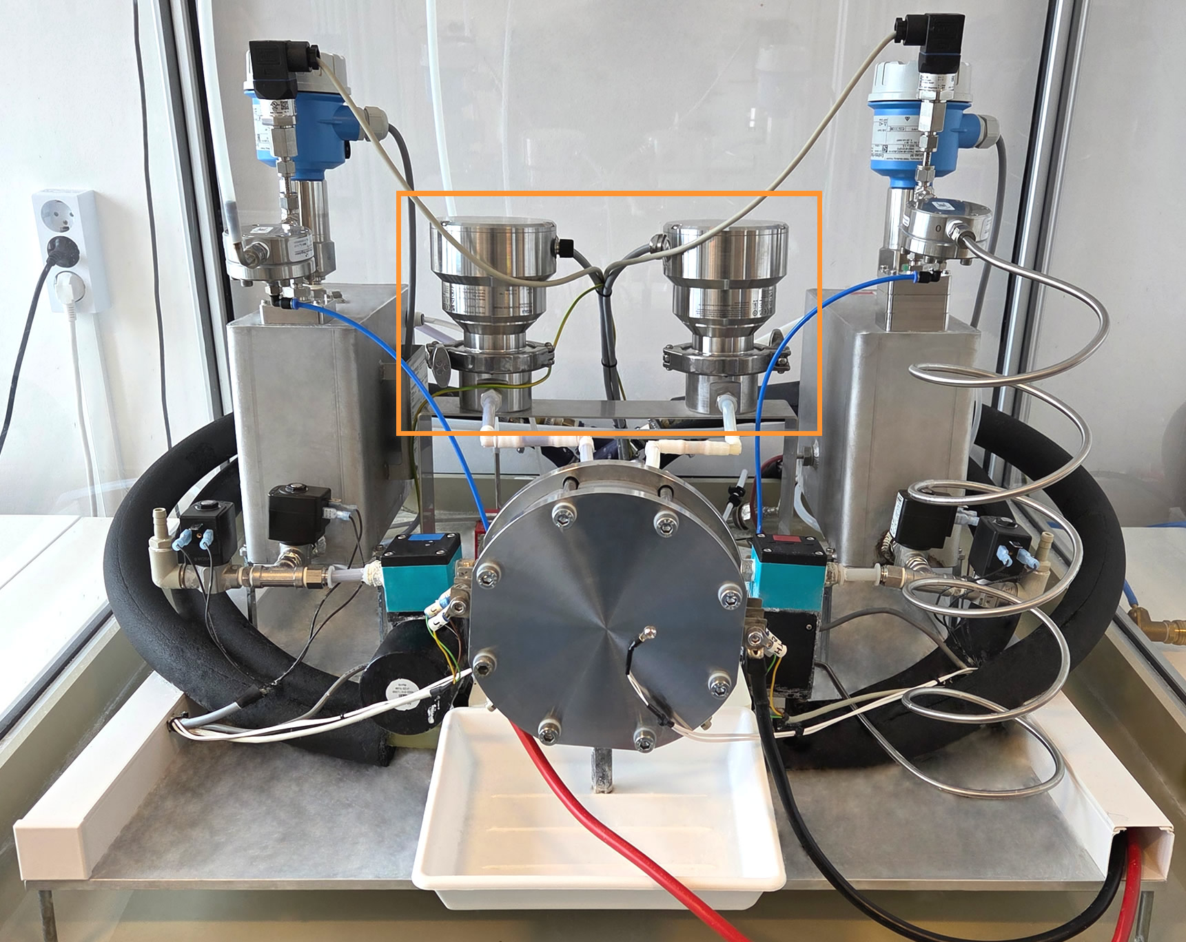 Auf dem Prüfstand wurden zwei Vaisala Inline-Refraktometer PR53AC montiert, um Echtzeitmessungen der KOH-Konzentration auf beiden Seiten der Membran zu liefern. Kristian Macke sagt: